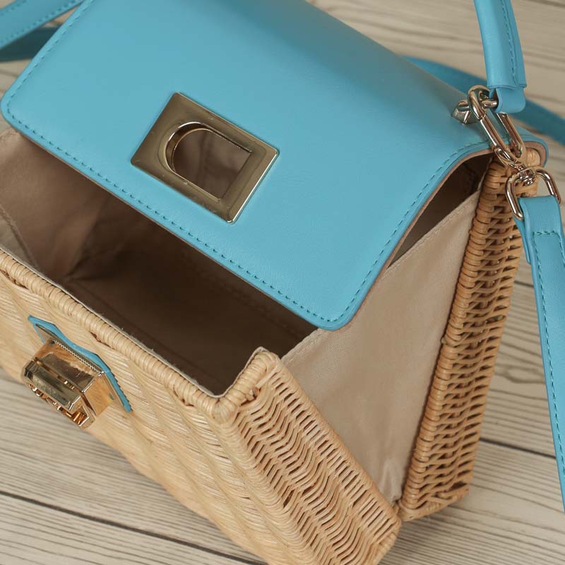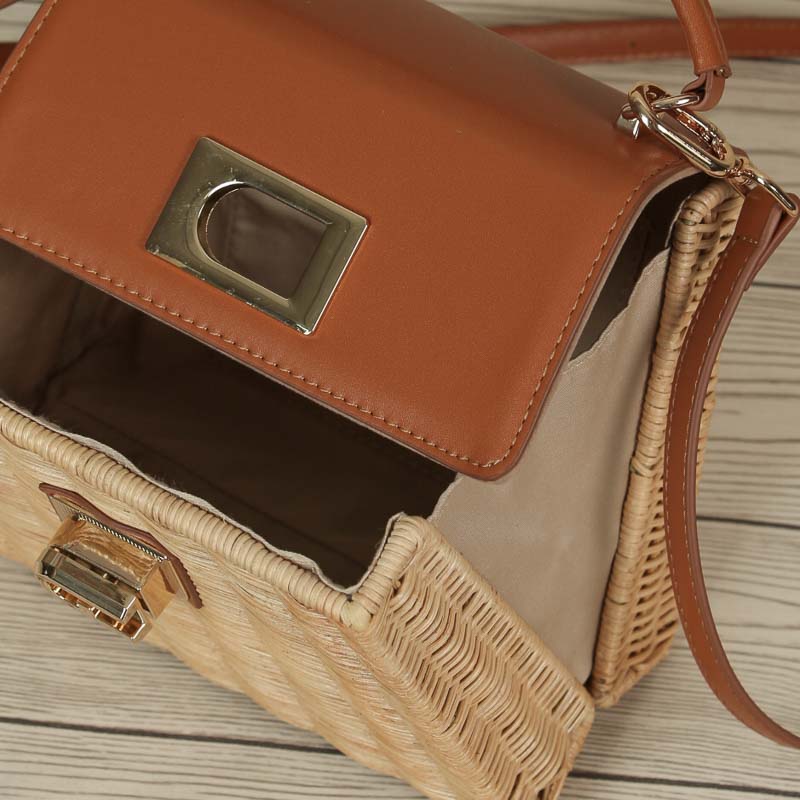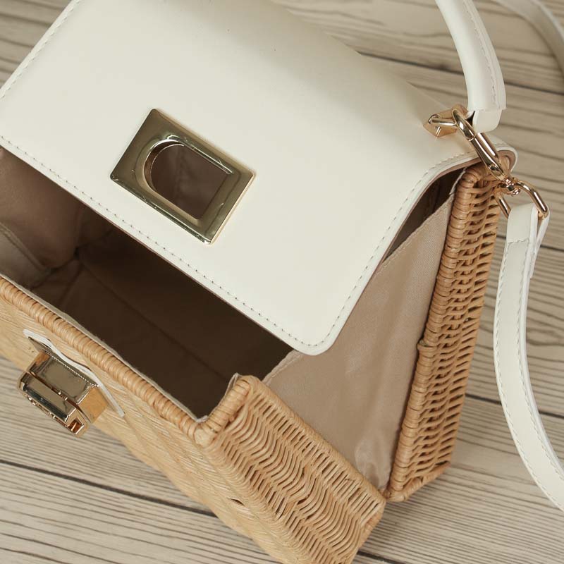 This popular rattan bag with its square design is the perfect accessory for summer and holidays. Crafted by skilled craftsmen, it combines functionality and style perfectly. The luxurious leather closure adds a touch of luxury while keeping your belongings safe, giving you peace of mind while enjoying a relaxing beach day.กระเป๋าหวายยอดนิยมที่มีดีไซน์ทรงเหลี่ยมใบนี้เป็นเครื่องประดับที่สมบูรณ์แบบสำหรับฤดูร้อนและวันหยุด  กระเป๋าใบนี้ประดิษฐ์โดยช่างฝีมือผู้ชำนาญ ผสมผสานการใช้งานและสไตล์ได้อย่างลงตัว การปิดด้วย